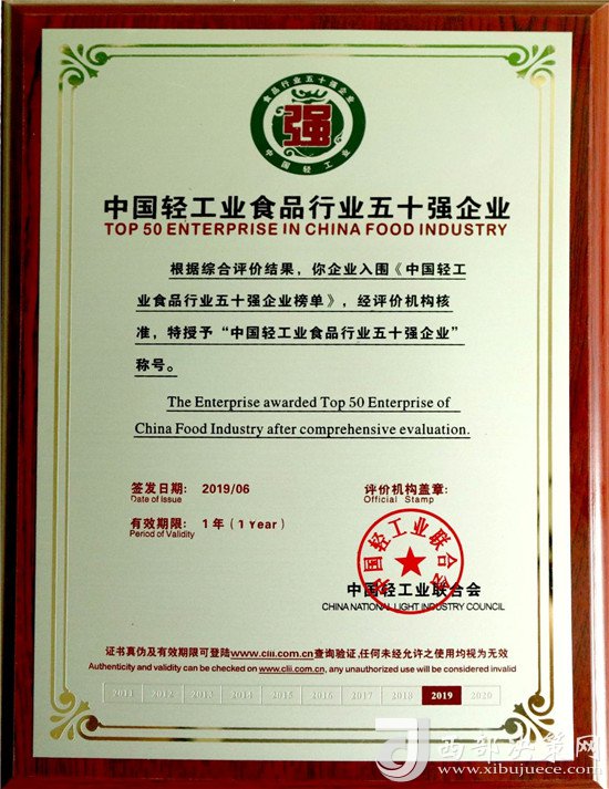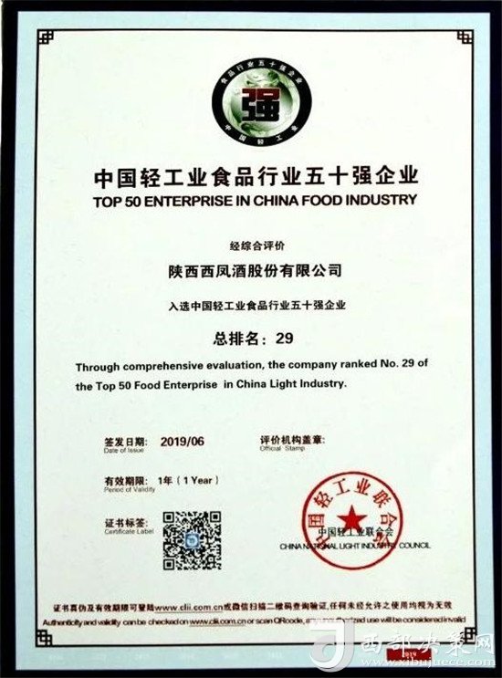 “中國(guó)輕工業(yè)食品行業(yè)五十強(qiáng)企業(yè)”榜單是評(píng)價(jià)輕工業(yè)食品企業(yè)競(jìng)爭(zhēng)力的權(quán)威榜單,也是衡量中國(guó)輕工業(yè)食品企業(yè)發(fā)展活力的重要標(biāo)準(zhǔn)。此次榜單在評(píng)選標(biāo)準(zhǔn)上重點(diǎn)考量了2018年度參評(píng)企業(yè)的營(yíng)業(yè)收入、利潤(rùn)總額、營(yíng)業(yè)收入利潤(rùn)率、稅收占利稅比重、研發(fā)投入及營(yíng)業(yè)收入增速六項(xiàng)指標(biāo)綜合評(píng)分,力求結(jié)合互聯(lián)網(wǎng)時(shí)代特征對(duì)企業(yè)進(jìn)行充分全面的評(píng)估,要求企業(yè)不僅能夠?qū)崿F(xiàn)均衡發(fā)展,還要具備較強(qiáng)的市場(chǎng)活力。西鳳股份公司憑借出色的經(jīng)營(yíng)業(yè)績(jī)和綜合表現(xiàn),獲得了大會(huì)的一致認(rèn)可。