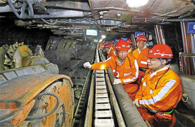 7月2日,省委書記胡和平來到錦界煤礦調(diào)研。在礦井下,他仔細了解煤礦生產(chǎn)運營情況。記者 宋紅梅攝