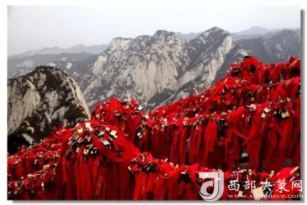 華山是一座愛情的殿堂,華山上的愛情故事悲烈、凄美而感人。我們曾經(jīng)為世界上許許多多的愛情故事所感動。其實,發(fā)生在華山上的愛情故事一樣讓人的心情無法平靜。眾所周知的神話傳說《寶蓮燈》中,三圣母為了愛情,被二郎神巨石壓在華山頂上;弄玉為了愛情,逃離安逸的生活,與蕭史雙雙來到華山,琴瑟合鳴;漢臣王咸不畏艱險,到華山尋找賢妻南陽公主,等等。這些愛情故事,感天動地,流傳不衰,不知讓多少人為之贊嘆。也許是讓華山上的這些動人的愛情故事所感染,不知從什么時候開始,在代表著堅實聯(lián)結的一串串鐵鏈上,游人掛上了金光閃閃的鎖子,把矢志不渝的愛情鎖在華山上,祝愿自己的愛情如同華山一樣永遠不會改變。華山,有許許多多這樣與愛情有關的物事。華山,不愧是一座愛情的殿堂。