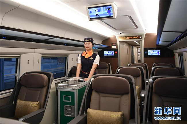 7月11日,乘務(wù)員在G319次列車上做發(fā)車前的準(zhǔn)備工作。當(dāng)日,重慶至香港直達(dá)高鐵正式開通,此次首發(fā)的G319次復(fù)興號列車運(yùn)行速度350km/h,沿途經(jīng)停遵義、貴陽東、桂林西、肇慶東、廣州南和深圳北站。列車由重慶西站至香港西九龍站全程運(yùn)行需7小時37分鐘,全程票二等座票價為660元。目前內(nèi)地與香港聯(lián)通的高鐵車站已增加到58個。新華社記者唐奕攝