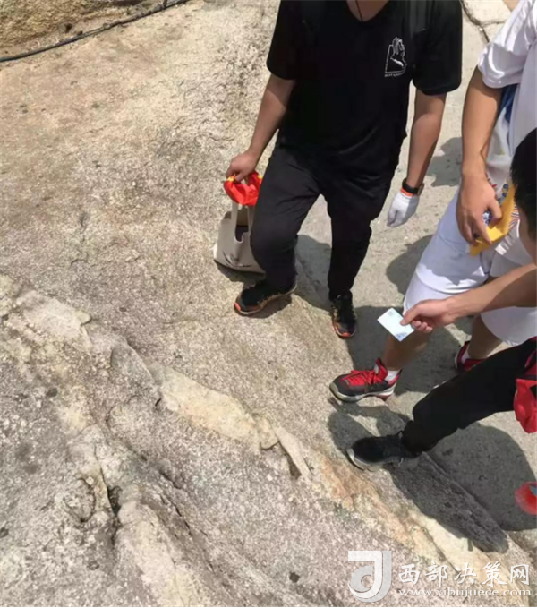 活動現(xiàn)場,高校環(huán)保志愿者們與工作人員共同協(xié)作,手提垃圾袋,沿著山路,在路兩邊細心撿拾著登山游客隨意丟棄的垃圾,并向游客們講解旅游中的一些不環(huán)保行為,講解環(huán)境保護知識、宣傳環(huán)境保護思想。游客們積極響應(yīng),并加入到撿拾垃圾的行動中來,所過之處,帶走了垃圾,還原了華山的美麗。