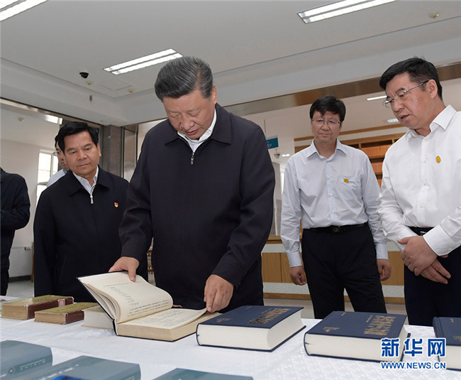 7月15日至16日,中共中央總書記、國(guó)家主席、中央軍委主席習(xí)近平在內(nèi)蒙古考察并指導(dǎo)開展“不忘初心、牢記使命”主題教育。這是16日,習(xí)近平在位于呼和浩特市的內(nèi)蒙古大學(xué)了解學(xué)校建設(shè)發(fā)展歷史、教學(xué)科研工作情況。 新華社記者 李學(xué)仁 攝
