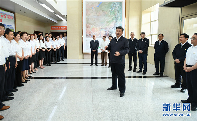 7月15日至16日,中共中央總書記、國(guó)家主席、中央軍委主席習(xí)近平在內(nèi)蒙古考察并指導(dǎo)開展“不忘初心、牢記使命”主題教育。這是16日,習(xí)近平在內(nèi)蒙古自治區(qū)自然資源廳調(diào)研指導(dǎo)開展“不忘初心、牢記使命”主題教育。 新華社記者 謝環(huán)馳 攝