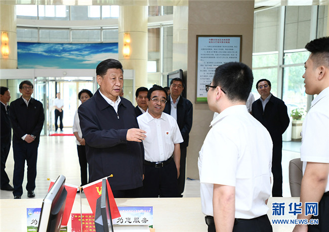 7月15日至16日,中共中央總書記、國(guó)家主席、中央軍委主席習(xí)近平在內(nèi)蒙古考察并指導(dǎo)開展“不忘初心、牢記使命”主題教育。這是16日上午,習(xí)近平在內(nèi)蒙古自治區(qū)自然資源廳自然資源政務(wù)大廳同工作人員交談,了解開展主題教育和落實(shí)便捷高效政務(wù)服務(wù)等情況。 新華社記者 謝環(huán)馳 攝