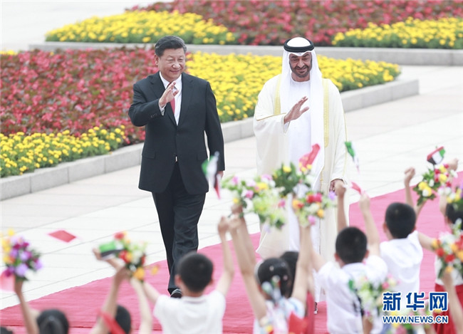 習近平主席舉行儀式,歡迎一位遠道而來的貴客——阿拉伯聯(lián)合酋長國阿布扎比王儲穆罕默德·本·扎耶德·阿勒納哈揚。