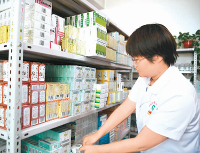 近年來,陜西省西安市積極推進(jìn)醫(yī)聯(lián)體建設(shè),全市已建成涵蓋80所二級(jí)醫(yī)療機(jī)構(gòu)和140所基層醫(yī)療機(jī)構(gòu)的醫(yī)聯(lián)體46個(gè),形成了上下聯(lián)動(dòng)的分級(jí)診療就醫(yī)模式。圖為5月21日,醫(yī)護(hù)人員在陜西省西安市國際港務(wù)區(qū)新筑社區(qū)衛(wèi)生服務(wù)中心為患者取藥。新華社記者 張博文攝