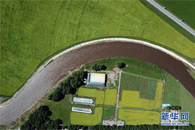 7月29日在碌曲縣拍攝的洮河河畔的油菜花田(無人機拍攝)。新華社記者 馬寧 攝
