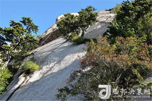 在華山北峰,過(guò)千尺幢經(jīng)百尺峽,就到了北峰最著名的老君犁溝。這里最為吸引人的,除卻“犁險(xiǎn)于幢,幢險(xiǎn)而犁突”的殊勝景觀,除卻老君犁溝盡頭陡峭到連山猴都難以逾越的“猢猻愁”,光是崖壁下一口幽深的石洞,就足以讓四海游人紛至沓來(lái)。足蹬石窩手?jǐn)堣F索攀上石頂,再走過(guò)一個(gè)獨(dú)木橋就到了山洞口。
