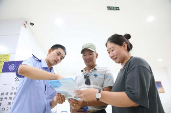 在滿都拉口岸,包頭出入境邊防檢查站執(zhí)勤業(yè)務(wù)科副科長宋強(qiáng)每天24小時(shí)帶著對(duì)講機(jī)。執(zhí)勤時(shí),他的代號(hào)是“04”。
