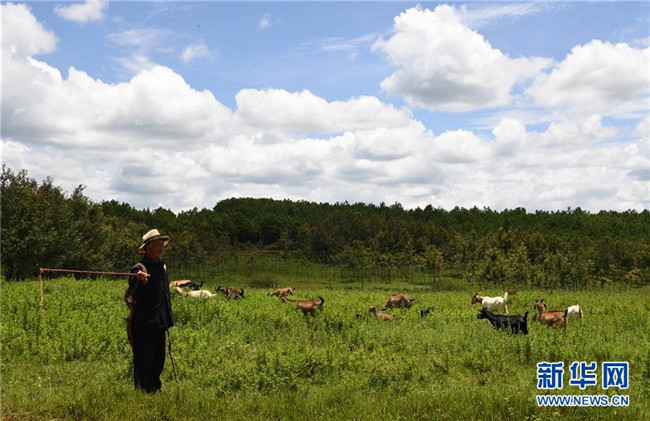 8月10日,一位老人在云南尋甸北大營草場放牧。 新華社記者楊宗友攝
