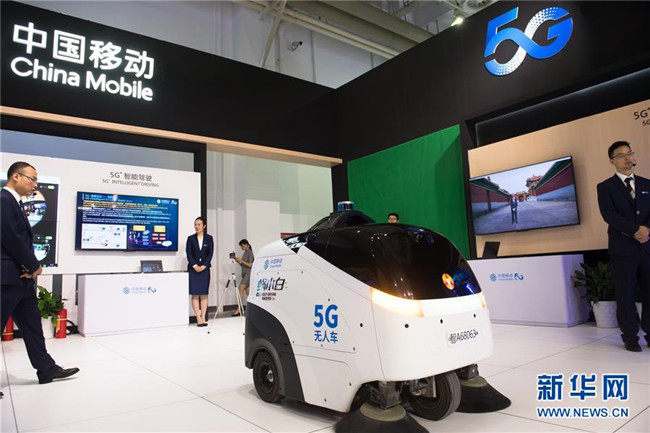 6月8日,在浙江寧波舉行的首屆中國-中東歐國家博覽會(huì)上,參展商在展示5G無人清掃車。新華社記者 翁忻旸 攝