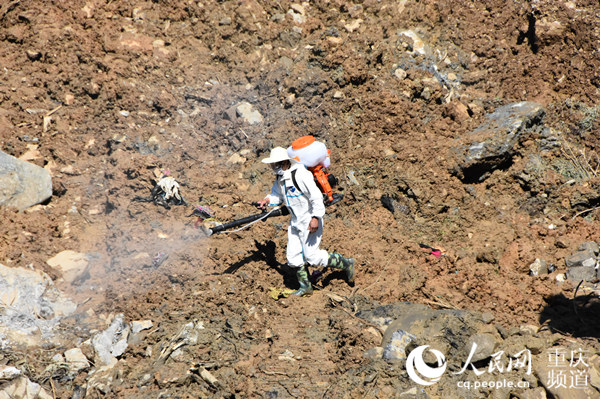 滑坡現(xiàn)場(chǎng)已開展衛(wèi)生防疫工作,防止疫情發(fā)生。城口縣委宣傳部供圖