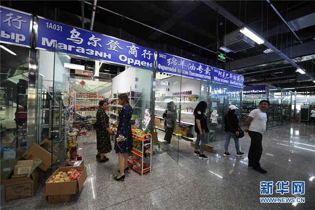8月15日,顧客在巴克圖中哈邊民互市絲路文化商品城購(gòu)物。