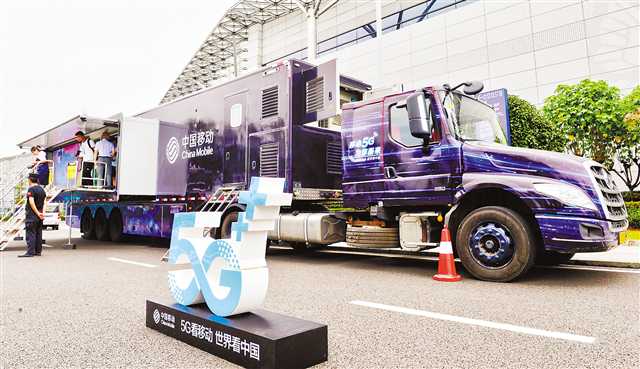 8月14日,在重慶國際博覽中心,重慶移動(dòng)“5G巡洋艦”停靠在此。這是全市首輛大型5G應(yīng)用開放體驗(yàn)展示車,市民可零距離感受5G在教育、旅游、工業(yè)、娛樂領(lǐng)域的廣泛應(yīng)用。