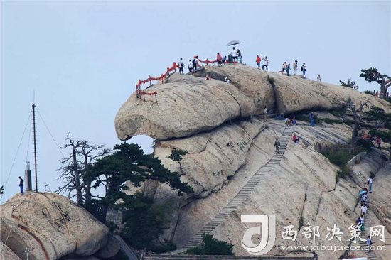 西北絕崖千丈,似刀削鋸截,其陡峭巍峨、陽剛挺拔之勢是華山山形之代表,西峰為一塊完整巨石,渾然天成,海拔2082米,是華山最秀麗險(xiǎn)峻的山峰,又因峰巔有巨石形狀好似蓮花瓣,古代文人多稱其為蓮花峰、芙蓉峰。