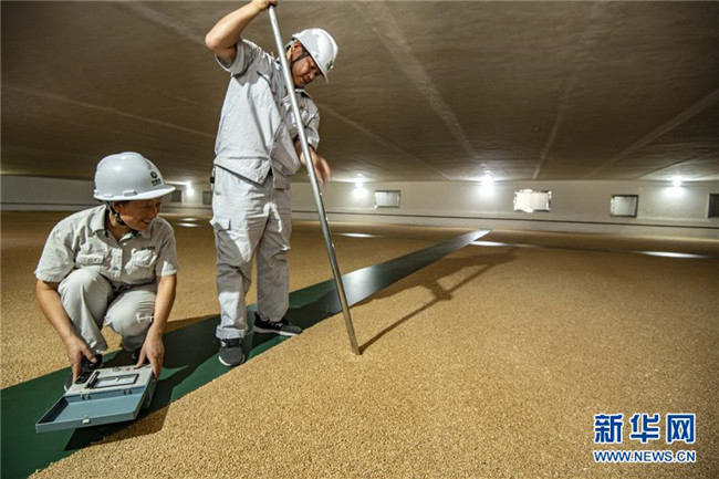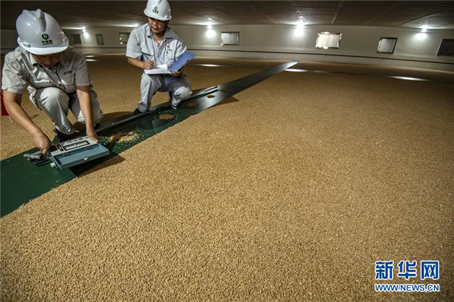 8月25日,中儲糧襄陽直屬庫的職工在糧庫內(nèi)進(jìn)行糧情檢測。