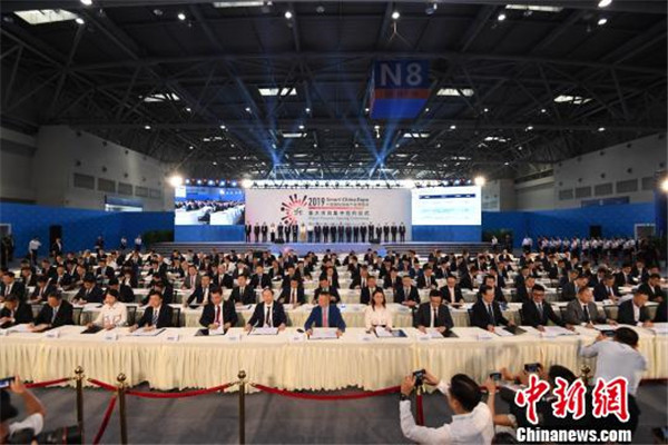 圖為2019中國國際智能產(chǎn)業(yè)博覽會(huì)開幕式現(xiàn)場。陳超攝