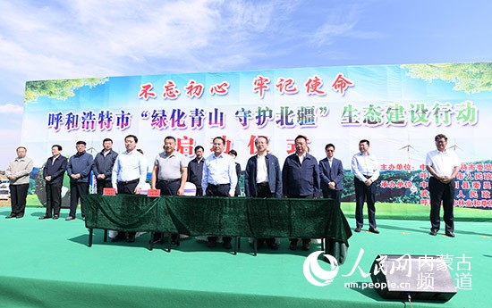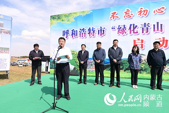 內(nèi)蒙古自治區(qū)黨委常委、呼和浩特市委書記王莉霞宣布生態(tài)建設(shè)行動(dòng)啟動(dòng)。