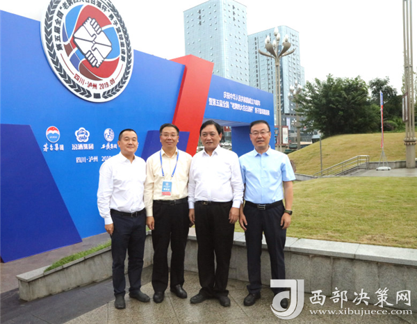 貴州茅臺(tái)酒廠(集團(tuán))有限責(zé)任公司黨委書記、董事長李保芳(左二)山西杏花村汾酒集團(tuán)有限責(zé)任公司黨委書記、董事長李秋喜(右二)陜西西鳳酒廠集團(tuán)有限公司黨委書記、董事長張正(右一)瀘州老窖股份有限公司黨委書記、董事長劉淼(左一)合影