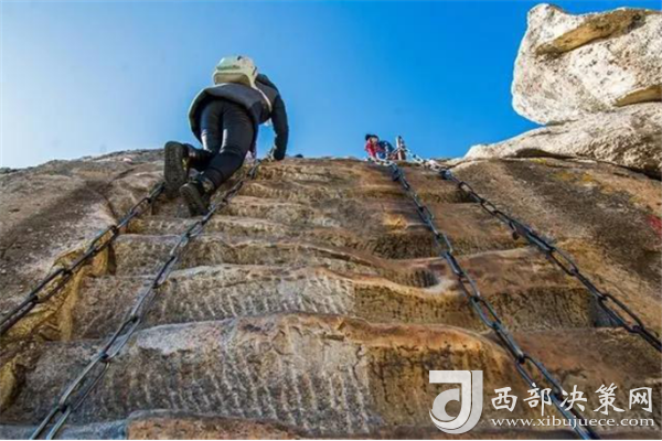 華山山勢極為陡峭,頂部諸峰外圍為斷層割切,成直立形懸崖,側(cè)面均為千仞峭壁,僅有一條極為狹窄的嶺脊(蒼龍嶺)與之相通,其險峻特征在五岳中絕無僅有,這也是華山地貌形態(tài)的一大特點。(供稿:華旅集團(tuán)營銷中心)
