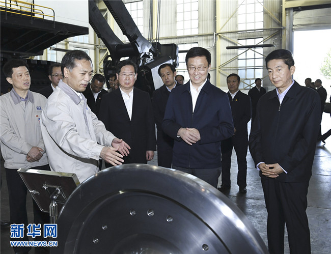太原重型機(jī)械集團(tuán)有限責(zé)任公司是新中國(guó)自行設(shè)計(jì)建設(shè)的第一座重型機(jī)械廠。韓正來(lái)到這里,考察礦山挖掘機(jī)、高鐵輪對(duì)等先進(jìn)機(jī)械研發(fā)生產(chǎn)情況。韓正強(qiáng)調(diào),重型機(jī)械是國(guó)之重器,是先進(jìn)制造業(yè)的重要支撐,要加快產(chǎn)品智能化步伐,提高生產(chǎn)線(xiàn)和生產(chǎn)設(shè)備的國(guó)產(chǎn)化率,實(shí)現(xiàn)精密零部件加工的技術(shù)突破,積極拓展“一帶一路”沿線(xiàn)國(guó)家市場(chǎng),加強(qiáng)人才隊(duì)伍建設(shè),打造具有國(guó)際競(jìng)爭(zhēng)力的高端裝備制造產(chǎn)業(yè)。韓正走進(jìn)生產(chǎn)車(chē)間,勉勵(lì)一線(xiàn)工人抓住轉(zhuǎn)型升級(jí)機(jī)遇,推動(dòng)企業(yè)加快發(fā)展,實(shí)現(xiàn)個(gè)人價(jià)值。