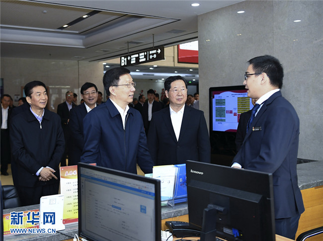 10月21日至22日,中共中央政治局常委、國(guó)務(wù)院副總理韓正在山西省調(diào)研。這是10月21日,韓正來(lái)到山西省政務(wù)服務(wù)中心,考察政府職能轉(zhuǎn)變和“放管服”改革推進(jìn)情況。新華社記者燕雁攝