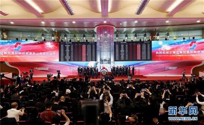 這是上海證券交易所舉行的科創(chuàng)板首批公司上市儀式現(xiàn)場(chǎng)(7月22日攝)。新華社記者 方喆攝