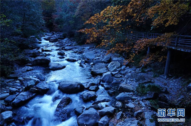 陜西嵐皋縣地處大巴山北麓,境內山水相依,美景薈萃。時下,這里層林盡染,秋光瀲滟,云霧繚繞,宛如仙境。 新華社記者 邵瑞 攝