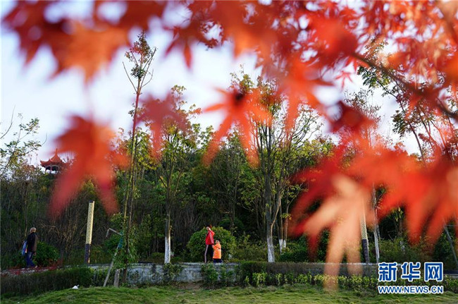 10月30日,游客在陜西嵐皋巴山珍稀植物園內游玩。