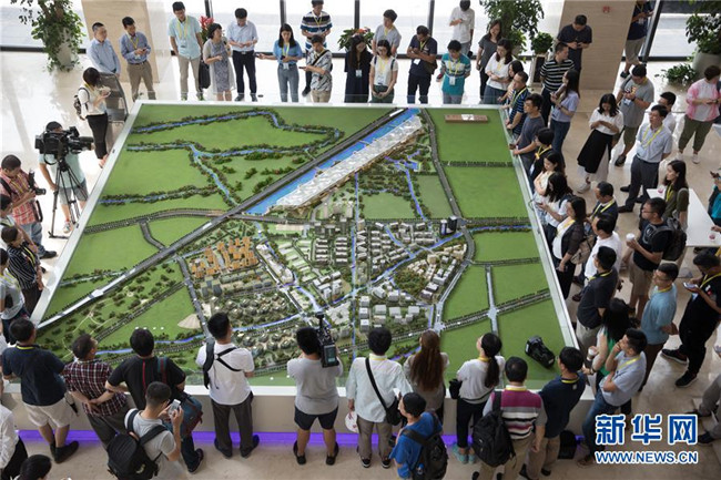 在上海臨港松江科技城沙盤前,參觀者聽取建設(shè)規(guī)劃(8月13日攝)。 G60科創(chuàng)走廊是利用長三角區(qū)位優(yōu)勢、良好的產(chǎn)業(yè)基礎(chǔ)和高??蒲袡C(jī)構(gòu)集中等特點(diǎn)打造的區(qū)域協(xié)同創(chuàng)新發(fā)展的重要平臺(tái),將成為長三角更高質(zhì)量一體化發(fā)展的重要引擎。新華社記者 金立旺 攝
