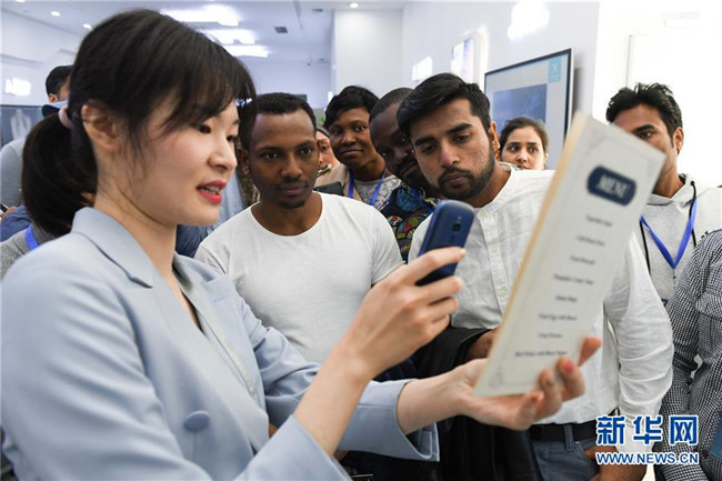 外國留學(xué)生在科大訊飛股份有限公司參觀(10月18日攝)。新華社記者 張端 攝