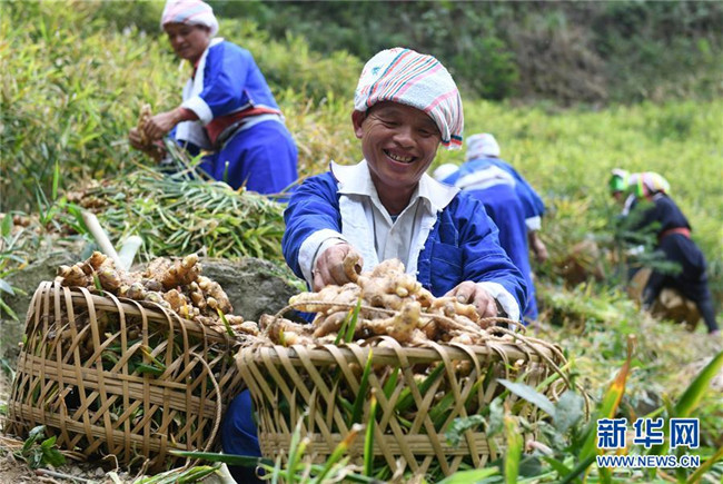 近年來,廣西賀州市平桂區(qū)努力培育扶貧產(chǎn)業(yè),在6個(gè)土瑤聚居的深度貧困村發(fā)展大肉姜種植,帶動(dòng)當(dāng)?shù)厝罕娒撠氈赂?。目前,這6個(gè)深度貧困村大肉姜種植面積已達(dá)3166畝,實(shí)現(xiàn)了“戶均兩畝姜”的發(fā)展目標(biāo),大肉姜已成為當(dāng)?shù)厝罕娫鍪盏闹匾a(chǎn)業(yè)。 新華社記者 陸波岸 攝