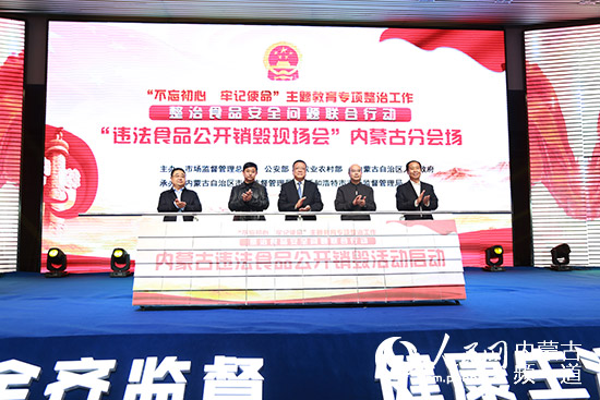 20日上午,由內(nèi)蒙古市場監(jiān)督管理局、呼和浩特市市場監(jiān)督管理局承辦的食品安全問題整治行動違法物品銷毀活動在呼和浩特市國際會展中心舉行。
