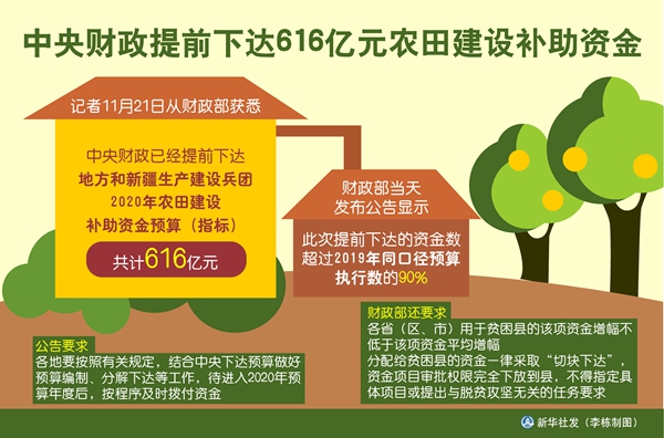 圖表:中央財(cái)政提前下達(dá)616億元農(nóng)田建設(shè)補(bǔ)助資金 新華社發(fā) 李棟 制圖