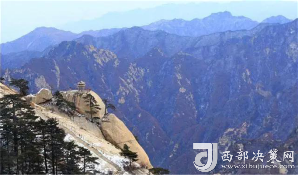 8、從玉泉院出發(fā),經(jīng)“回心石”、“千尺幢”、”百尺峽”和“老君犁溝”到北峰,從北峰南上,經(jīng)“擦耳崖”、“蒼龍嶺”,過金鎖關(guān),從這里可分別前往東、中、南、西三峰。