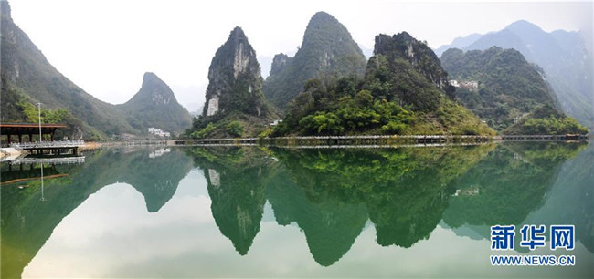 這是游客在觀賞廣西凌云縣浩坤湖景區(qū)的山水風(fēng)景(11月24日攝)。新華社記者張愛林