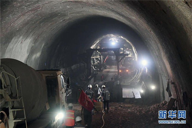 11月25日,中鐵十八局集團工作人員在三家村隧道作業(yè)。