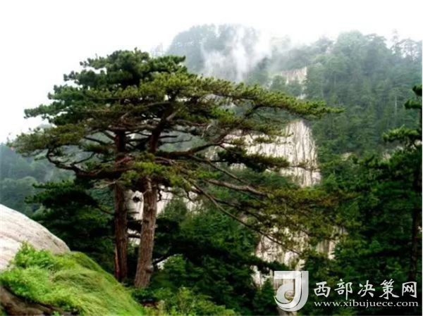 許多感人肺腑的曲折愛情故事,就是在出乎常人想象的磨難中愈發(fā)顯得光彩照人。三圣母與劉彥昌如此,蕭史與弄玉也如此。流傳在華山的這些愛情故事,不論是現實的還是神話的,我們今天都只能在虛幻的世界中來感嘆。唯一能夠見證這種忠貞不渝愛情盟約的,就是華山的松樹。華山的松樹有它的品性,有它的精神。有的單獨挺拔著一種堅強,有的則相并而立。那些或并立而生,或相擁而長,或枝枝纏繞的松樹,被賦予了“夫妻松”的人文精神。我們從這些姿態(tài)類似于男女相親不離的松樹身上,分明感受到了一種“堅貞不渝”、“白頭偕老”、“同甘共苦”、“風雨同舟”、“同枕而眠”等等夫妻恩愛的思想與精神內涵。有些松樹即使已經枝枯葉干,依然廝守不倒,就像一對攜手走過風風雨雨幾十年的老夫妻,讓人看了無不動容。