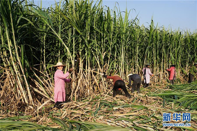 12月3日,漢濱區(qū)五里鎮(zhèn)張營(yíng)村村民在甘蔗地里采收甘蔗。新華社記者 邵瑞 攝