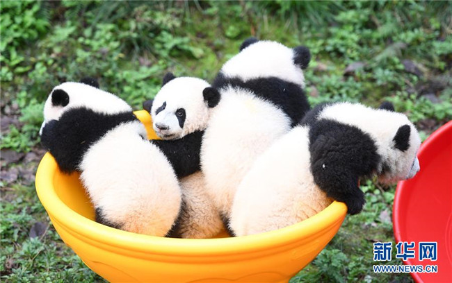 12月22日,重慶動物園4只半歲大熊貓在玩耍。當日,重慶動物園為4只大熊貓寶寶“雙雙”“重重”“喜喜”“慶慶”舉行半歲生日慶?;顒?。4只半歲大熊貓在飼養(yǎng)員的照料下,在熊貓館運動場內(nèi)玩耍、嬉戲,與市民游客一同過冬至。新華社記者唐奕攝