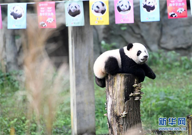 12月22日,重慶動物園1只半歲的大熊貓在戶外活動。當日,重慶動物園為4只大熊貓寶寶“雙雙”“重重”“喜喜”“慶慶”舉行半歲生日慶祝活動。4只半歲大熊貓在飼養(yǎng)員的照料下,在熊貓館運動場內(nèi)玩耍、嬉戲,與市民游客一同過冬至。新華社記者唐奕攝