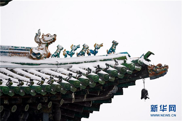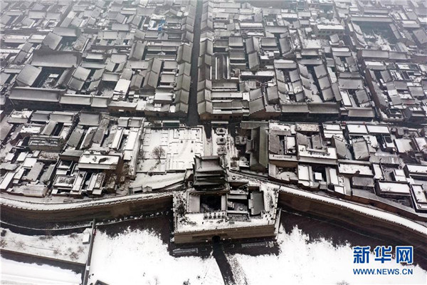 當(dāng)日,山西省平遙縣迎來(lái)降雪,雪中的平遙古城銀裝素裹,美景如畫(huà)。平遙古城是目前中國(guó)保存最完整的古代縣級(jí)城池之一,1997年被列入世界文化遺產(chǎn)名錄。新華社記者詹彥攝