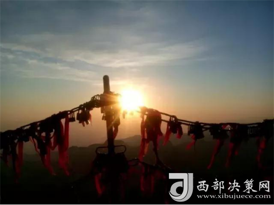 是時(shí),但見夜幕自東方悄然隱退,晨曦初露,漸漸霞光瑰麗,云源奔涌。瞬間,一輪火球噴薄而出,繼而光芒四射,氣象萬千,整個世界大放光明,游人身心為之一振。待云霧散盡,蒼松翠柏,則更加清麗悅目,美妙神奇。故而,游名山者必登華山,登華山者必觀日。華山日出亦被列為華山自然風(fēng)光中的重要景觀之一。