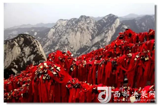 華山是一座愛情的殿堂。發(fā)生在華山上的每一個愛情故事都讓人感動、讓人頂禮膜拜。眾所周知的神話傳說《寶蓮燈》中,三圣母為了愛情,被二郎神用巨石壓在華山峰下;弄玉為了愛情,逃離安逸的生活,與蕭史雙雙來到華山,琴瑟合鳴;漢臣王咸不畏艱險(xiǎn),到華山尋找賢妻南陽公主等等這些愛情故事,感天動地,流傳不衰。也許是讓華山上這些動人的愛情故事所感染,不知從什么時(shí)候開始,游人將自己對美好愛情的向往,對理想愛情固若磐石的期望用一把把閃閃的金鎖,堅(jiān)定的鎖在了華山之上,在華山的見證下,在華山神的保佑下,舉案齊眉、白頭偕老。