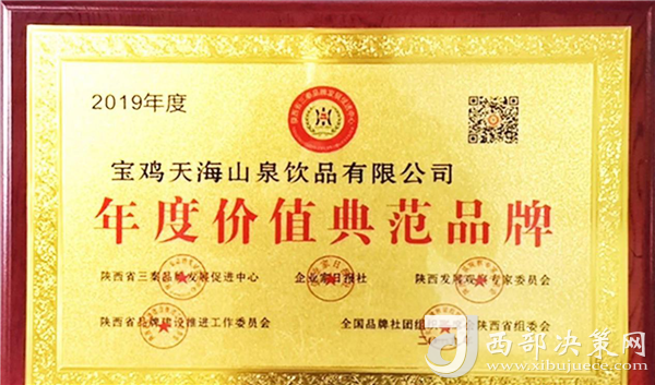 “年度價值典范品牌”榮譽由陜西省三秦品牌發(fā)展促進中心、企業(yè)家日報社、陜西發(fā)展觀察專家委員會、陜西省品牌建設推進工作委員會、全國品牌社團組織聯(lián)席會陜西省組委會等單位聯(lián)合評審頒發(fā)。此次太極之源礦泉水品牌生產(chǎn)灌裝基地、“中國富硒食品產(chǎn)業(yè)化基地”——寶雞天海山泉飲品有限公司獲得此項榮譽,可以說是對太極之源品牌價值的高度認可和肯定!