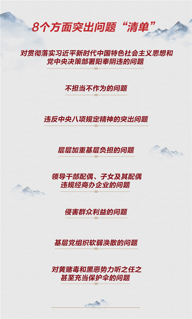 去年7月,一份《關(guān)于在“不忘初心、牢記使命”主題教育中開(kāi)展專(zhuān)項(xiàng)整治的通知》印發(fā)全國(guó),列出了8個(gè)方面的突出問(wèn)題。主題教育把開(kāi)展專(zhuān)項(xiàng)整治作為增強(qiáng)實(shí)效的重要抓手,做到問(wèn)題不解決不松勁、解決不徹底不放手、群眾不認(rèn)可不罷休。12月底,中共中央政治局“不忘初心、牢記使命”專(zhuān)題民主生活會(huì)指出,“突出問(wèn)題專(zhuān)項(xiàng)整治成效明顯”。