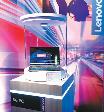 1月8日,聯(lián)想公司推出的全球首款5G電腦——“Yoga 5G”在2020年美國拉斯維加斯消費電子展上公開展示,首次將5G連接功能從智能手機領域拓展到高端計算領域。新華社記者 吳曉凌攝