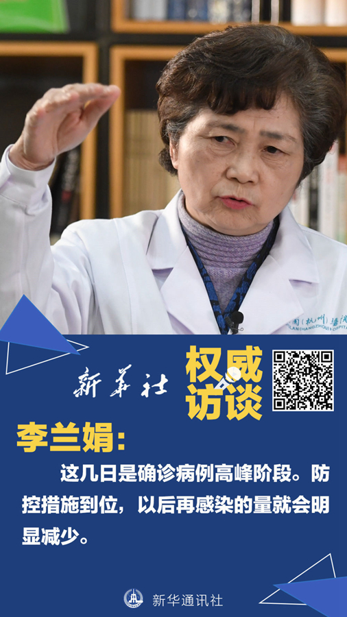 李蘭娟:之前為潛伏期的病人開始發(fā)病。早期武漢流到全國各地的病人以及留在武漢的病人都到了發(fā)病期,這是高峰來臨的一個(gè)階段,一點(diǎn)也不奇怪。現(xiàn)在,發(fā)病的人我們隔離了,與他們有密切接觸的人員也調(diào)查出來、隔離起來,以后再感染的數(shù)量會明顯減少。武漢“封城”是非常英明的決策。正好趕上春節(jié)人口大流動(dòng),只有嚴(yán)格地把武漢控制起來,其他的地方才會減少發(fā)病率。