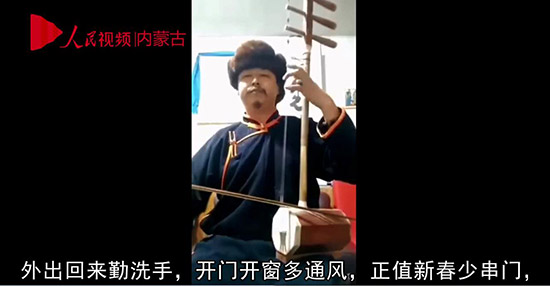 內(nèi)蒙古牧民用“好來寶”宣傳疫情防控知識(shí)。視頻截圖