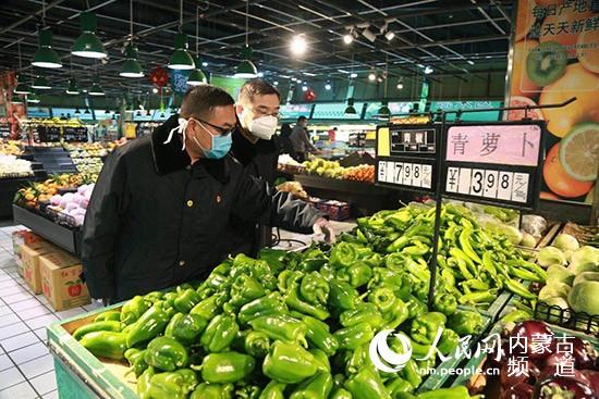 內(nèi)蒙古自治區(qū)市場(chǎng)監(jiān)管部門工作人員深入便民市場(chǎng)檢查物價(jià)。內(nèi)蒙古自治區(qū)市場(chǎng)監(jiān)管局供圖